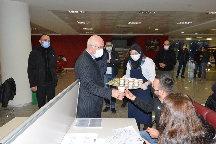 Kütüphanede gerçekleştirilen çorba ikramında öğrencilerle bir araya gelen Rektör Prof. Dr. Ekrem Savaş, “Öğrenci odaklı çalışmalarımız hız kesmeden devam ediyor. Sınav haftalarında her sene geleneksel olarak gerçekleştirdiğimiz çorba ikramını, bu sene de devam ettiriyoruz. Öğrencilerimiz derslerine daha iyi çalışsınlar, motive olsunlar diye, bugün onlara Uşak’ımızın her derde deva tarhana çorbasını ikram ediyoruz. Sınav sürecinde her gün farklı çorbalar ikram edilecek. Sınavlarda tüm öğrencilerimize başarılar diliyorum. Öğrencilerimize en önemli tavsiyem, eğer sınavlarında başarılı olmak istiyorlarsa, derslerine günü gününe düzenli çalışmalılar.” şeklinde konuştu.
