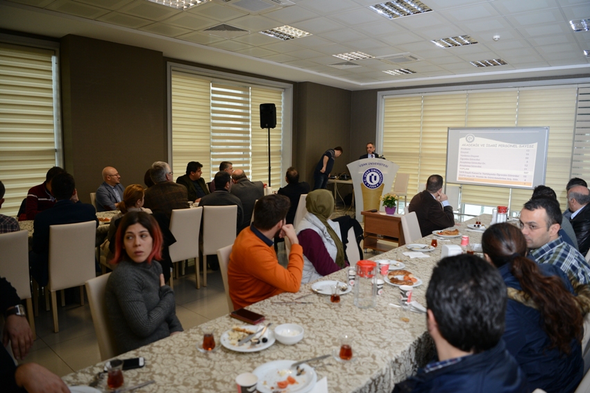 Uşak Üniversitesi olarak 2053 hedeflerimizi şimdiden ortaya koymamız gerektiğine dikkat çeken Rektörümüz Prof. Dr. Ekrem Savaş “2053 yılında Uşak’ın ve üniversitemizin ne durumda olacağını şimdiden planlamalı bununla ilgili SWOT analizimizi yapmalıyız. Uşak Üniversitesi olarak belli alanlarda öne çıkmalı ve markalaşmalıyız. Üniversitemizi uluslararası alanda saygın bir yere getirecek çalışmalar yapmalıyız. Üniversitemizi ileriye taşıyacak her türlü çalışmanın arkasında oluruz. Artık yatay değil dikey büyümeliyiz. Ben çalışan kişiyi sırtımda taşırım. Hepinize çalışmalarınızda başarılar diliyorum.”dedi.