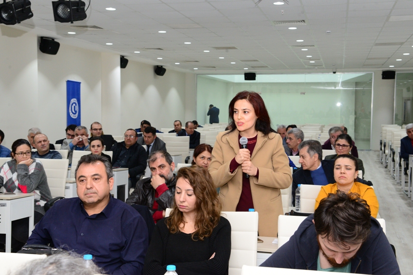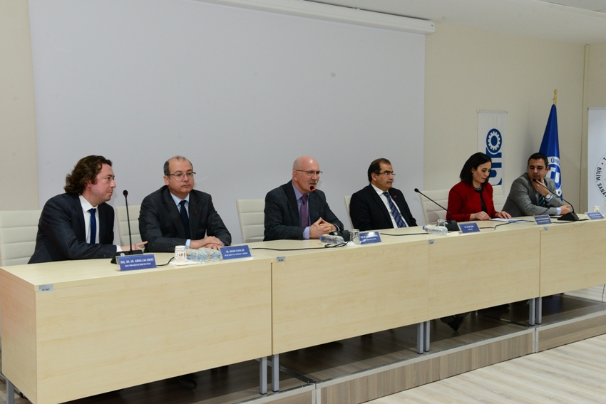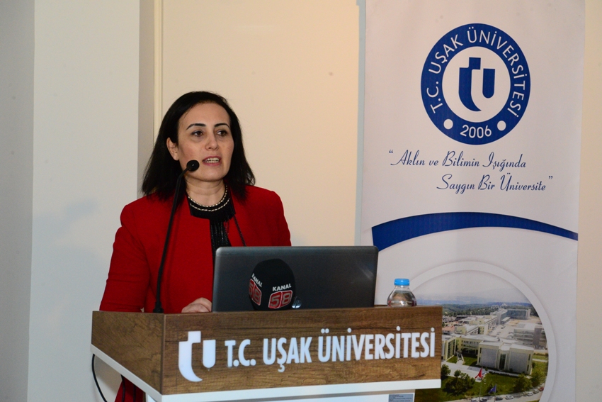 Açılış konuşmalarının ardından Uşak Üniversitesi Deri, Tekstil ve Seramik Koordinasyon Kurulu Üyesi Dr. Erhan Aydın “İhtisaslaşma Süreci, İlerlemeler ve Sektörden Beklentiler” konulu sunumunu gerçekleştirdi. Dr. Erhan Aydın, Bölgesel Kalkınma Odaklı Misyon Farklılaşması ve İhtisaslaşması Programının amacının, Üniversitemizin ülkemiz hedefleri kapsamında, başta Uşak şehrimiz ve bölgemiz ile bütünleşmesinin sağlanması, deri, tekstil ve seramik alanlarında iktisadi, sosyal ve beşeri sermayenin geliştirilmesi adına çalışmalarını derinleştirmesi, ilgili alanlar özelinde tek tipten uzaklaşarak kurumsal farklılık ve çeşitliliğe yönelmesi, altyapısını misyon dahilinde ihtisaslaştırarak güçlü yönlerini bu sektörlerin kalkınmasına odaklaması olduğunu söyledi. İhtisaslaşmaya seçilen üniversiteler arasında 3 ana alana sahip olan tek üniversitenin Uşak Üniversitesi olduğuna dikkat çeken Dr. Erhan Aydın, kurum içi ve kurum dışı paydaşlarla yapılan toplantılar neticesinde 7 ana program amacı belirlendiğini bunların, yenilikçi odaklı tasarım faaliyetlerinin gerçekleştirilmesi, mesleki niteliğin geliştirilmesine yönelik eğitimlerin verilmesi, sürdürülebilir ekolojik yaklaşımların geliştirilmesi, yüksek katma değerli ürün ve üretim faaliyetlerinin gerçekleştirilmesi, kırsal kalkınma odaklı faaliyetlerin gerçekleştirilmesi, rekabet edilebilirliğin artırılması ve sektörde kalite ve standardizasyonun sağlanması olduğunu sözlerine ekledi.