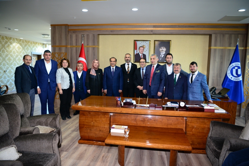 Konferansın ardından Uşak Valisi Salim Demir, AK Parti Milletvekili Metin Külünk, AK Ocaklar Derneği Genel Başkanı Hakan Yiğit ve beraberlerindeki heyet Rektör Vekilimiz Prof. Dr. Sayın Dalkıran’ı makamında ziyaret ettiler. Rektör Vekilimiz Prof. Dr. Sayın Dalkıran, AK Parti Milletvekili Metin Külünk ve AK Ocaklar Derneği Genel Başkanı Hakan Yiğit’e yaptıkları değerli konuşmalardan dolayı teşekkür ederek üniversitemizin plaketini takdim etti.