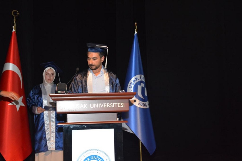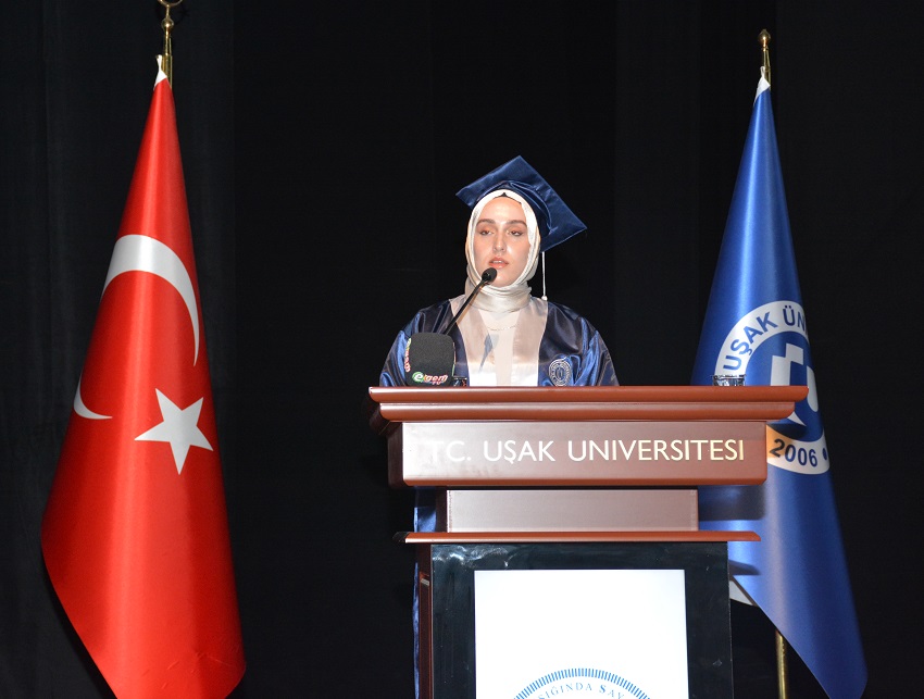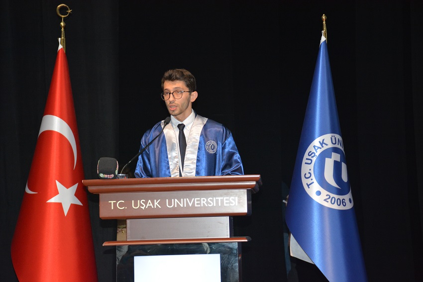 Mezuniyet Ödül Törenin ardından ilk mezunlarını veren Uşak Üniversitesi Tıp Fakültesi mezuniyet heyecanı yaşadı. İlk mezunlar adına fakülte birincisi Emre Sarıkaya konuştu. Sarıkaya, 6 yıl önce hekim olabilmek için çıktıkları yolda, beyaz önlüklerini giydikleri andan itibaren hekimliğin en önemli sorumluluğunun vicdani sorumluluk olduğunu öğrendiklerini söyleyerek üzerlerinde emeği olan tüm hocalarına ve her koşulda desteklerini esirgemeyen ailesine teşekkür etti.