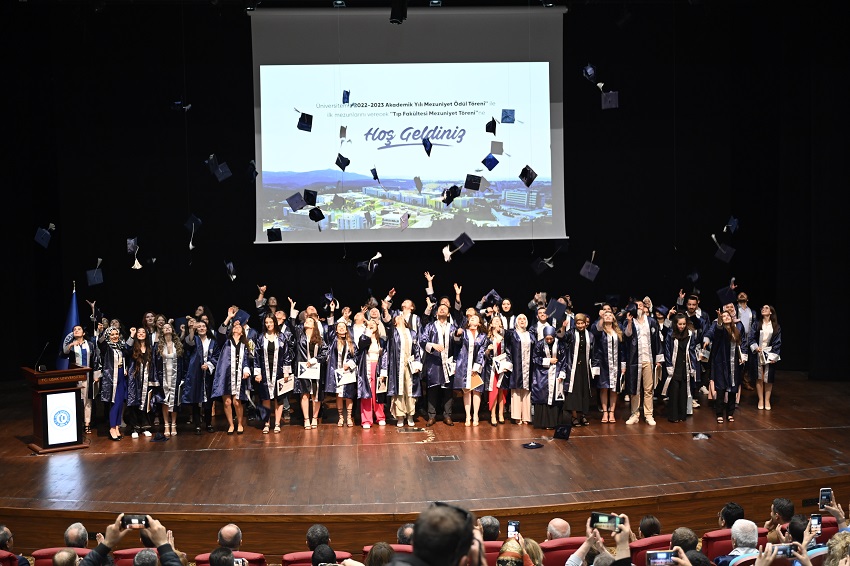 Uşak Üniversitesi 2022-2023 Akademik Yılı Mezuniyet Ödül Töreni ve ilk defa mezun veren Tıp Fakültemizin mezuniyet töreni 9 Haziran tarihinde Recep Tayyip Erdoğan Kongre ve Kültür Merkezinde gerçekleşti.
