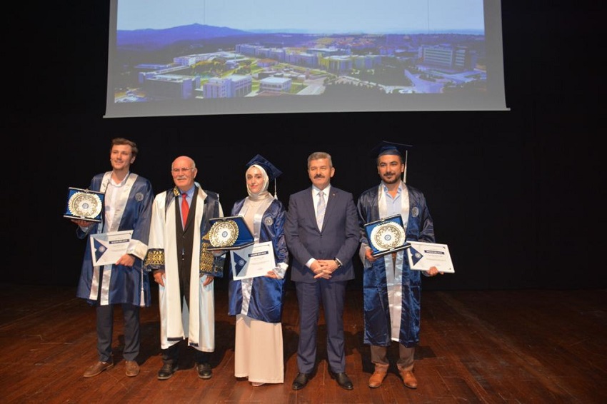 Tanıtım filminin ardından, mezun öğrenciler adına dönem birincisi Mühendislik Fakültesi Elektrik-Elektronik Mühendisliği Bölümü öğrencisi Oğuz Gökhan Aydın ile dönem ikincisi Eğitim Fakültesi Özel Eğitim Öğretmenliği öğrencisi Rabia Kılıç birer konuşma yaptı. Dönem birincileri, üzerlerinde emeği olan tüm hocalarına ve ailelerine teşekkür ederek çok çalışmaya devam edeceklerini söylediler.