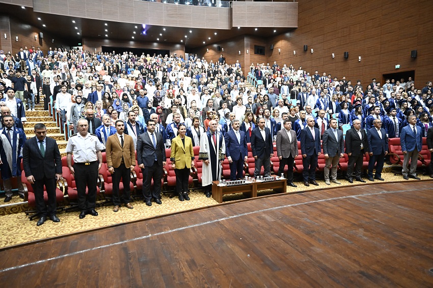 Mezun öğrenciler ve ailelerine seslenen Prof. Dr. Ekrem Savaş, “Sevgili mezunlarımız, bugün sizlere sadece bir diploma vermiyoruz. Aynı zamanda sizleri bilgiyle donatılmış, sorgulayan, analitik düşünen ve yaşam boyu öğrenme prensibiyle hareket eden bireyler olarak yetiştirdik. Bu, sizlere üst düzey bir rekabet avantajı ve hayatınız boyunca sürekli gelişmenizi sağlayacaktır. Bugün burada bulunmanızın ve bu başarıyı elde etmenizin ardındaki en büyük destekçileriniz kuşkusuz sevgi dolu ailelerinizdir. Aileleriniz sizin en büyük yol göstericiniz ve ilham kaynağınızdır. Onlar, sizlere sevgiyle ve özveriyle eşlik ederek, eğitiminizdeki her adımda yanınızda oldular. Gece gündüz çalışarak, sizi en iyi şekilde yetiştirmek ve geleceğiniz için en iyi imkanları sağlamak için ellerinden gelenin en iyisini yaptılar. Onların fedakarlıkları, sizlerin başarılarıyla taçlanmış oldu” şeklinde konuştu.
