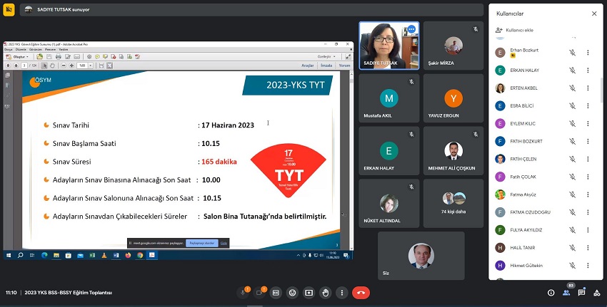 Toplantının ardından 15 Haziran tarihinde YKS için Uşak Üniversitesi ÖSYM İl Sınav Merkezi Koordinatörlüğü tarafından çevrimiçi “Görevli Eğitimi” gerçekleştirildi. Eğitimde Sınav Organizasyon Koordinatörü Prof. Dr. Sadiye Tutsak tarafından, Bina Sınav Sorumluları ve Bina Sınav Sorumlusu Yardımcılarına yönelik, 2023 YKS Sınavı ile ilgili sınav öncesi, sınav günü ve sonrasında alınacak tedbirler ve önlemler ile ilgili bilgi verildi.