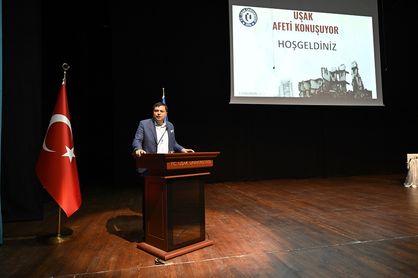 After the opening speeches, 3 sessions were held. The first session was moderated by Faculty of Communication faculty member Assoc. Prof. Dr. Emre Vadi Balcı, with the following speakers: Chamber of Geological Engineers Uşak Provincial Representative Nihat Erkan Gürsel with the presentation titled "Uşak Geology and Seismicity of the Region", Chamber of Civil Engineers Uşak Branch President Ümit Alp with the presentation titled "Pre-Disaster Preparation of Technical Infrastructure and Post-Disaster Importance", Uşak University Faculty of Engineering Civil Engineering Department faculty member Assoc. Prof. Dr. Hayri Baytan Özmen with the presentation titled "Factors Affecting the Behavior of Structures Under Earthquake Load", Çağlar Samancı, Uşak Provincial Representative of Chamber of Architects and Celal Onur Şahal from Uşak Branch of Chamber of Civil Engineers with the presentation titled "Urban Transformation in Uşak" and Zuhal Özçetin, Assistant Professor at Uşak University Faculty of Architecture and Design, Department of Architecture with the presentation titled "Post-Disaster Sheltering Processes, The Case of February 6, 2023 Earthquakes".