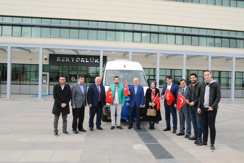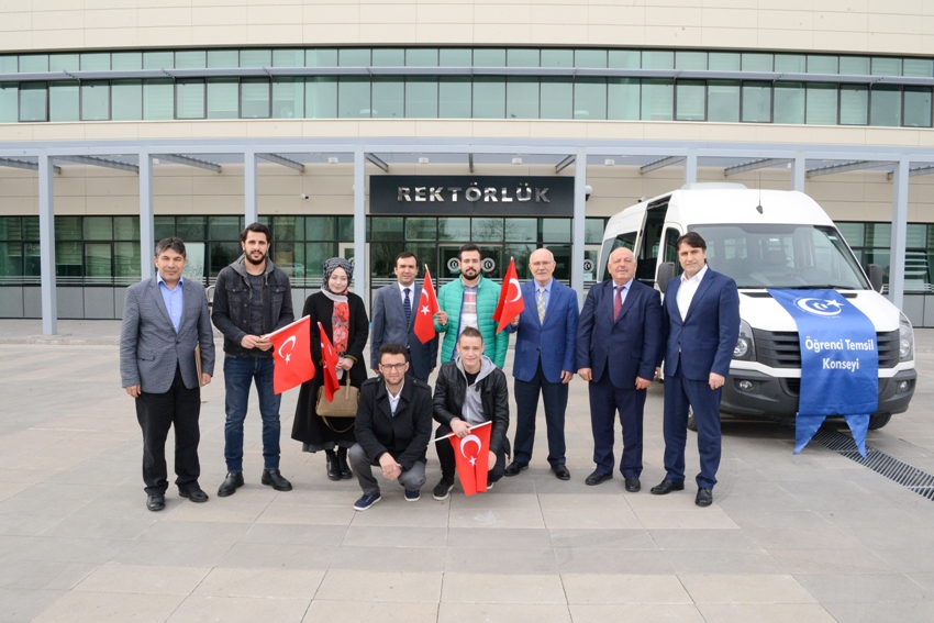 Rektörümüz Prof. Dr. Ekrem Savaş, Rektör Yardımcıları Prof. Dr. Ömer Karahan ile Prof. Dr. Metin Gümüş ve Genel Sekreter Vekili Prof. Dr. Adem Duru, yolculuk öncesi öğrencilerimizle bir araya geldiler.