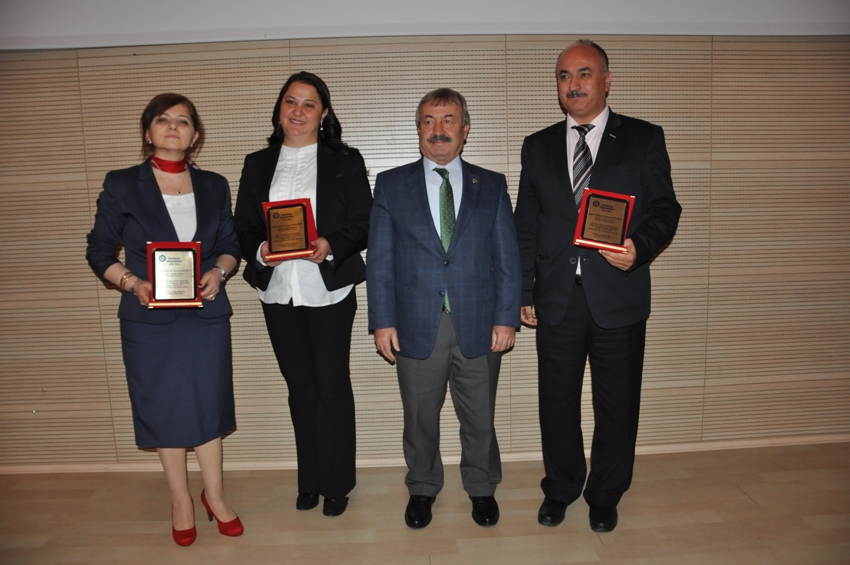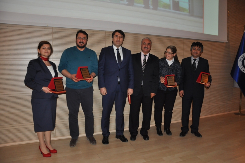 Akademik teşvikte ilk 3’e giren fakülte öğretim üyeleri Dekan Prof. Dr. Nuray Şahinler, Doç. Dr. Mahmut İslamoğlu ve Yrd. Doç Dr. Ayşen Melda Çolak’a plaketlerini Uşak İl Genel Meclis Başkanı Mehmet Nacak takdim etti.