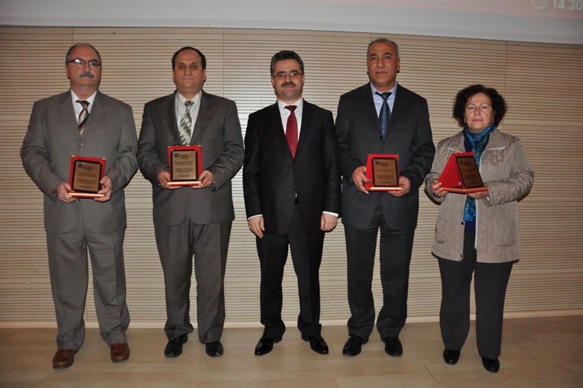 Meslekte 25. Yılını dolduran Dekan Prof. Dr. Nuray Şahinler, Prof. Dr. Fatih Çelen, Doç. Dr. Şener Tarla, Yrd. Doç. Dr. Gülcan Tarla ve Yrd. Doç. Dr. Mahmut İslamoğlu’na plaketlerini Rektör Yardımcımız Prof. Dr. Metin Gümüş takdim etti.