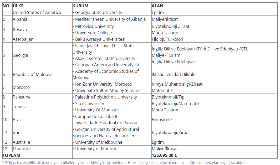 Uşak Üniversitesi, 2023 Teklif Çağrısı Ana Eylem 1-Programla İlişkili Olmayan Üçüncü Ülkeler ile Öğrenci ve Personel Hareketliliği Projeleri (KA171) kapsamında 8 farklı bölge kategorisinden 13 ülke için toplam 125.095 € hibe almaya hak kazandı.