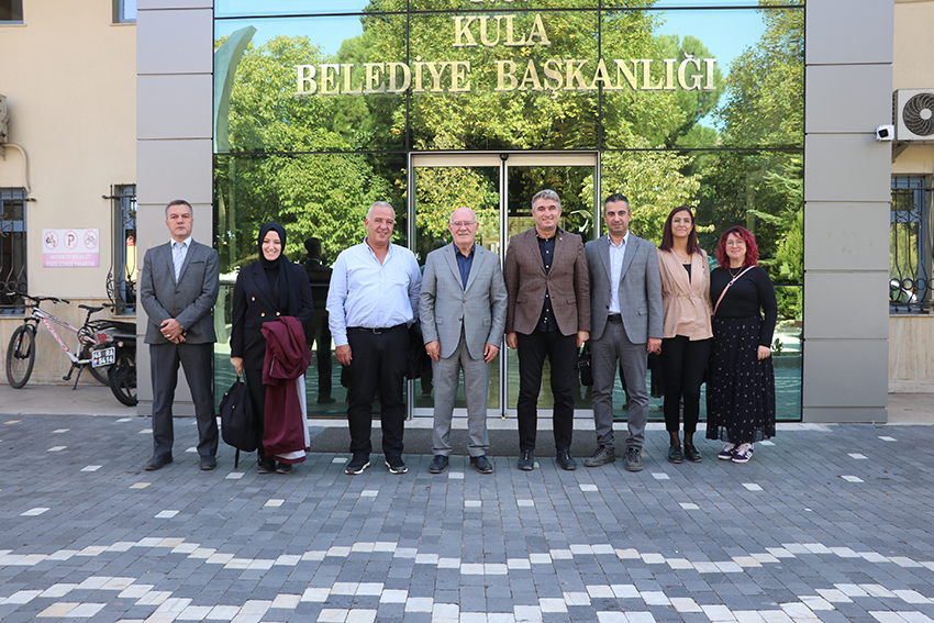Rektör Prof. Dr. Savaş ve Deri, Tekstil ve Seramik Tasarım Uygulama ve Araştırma Merkezi (DTS Tasarım Merkezi) Müdürü Doç. Dr. Eren Öner, merkez personeli Arş. Gör. Dr. Ayşe Şevkan Macit, Öğr. Gör. Cemile Ceren Kahraman ve Öğr. Gör. Sinem Ürel; Kula Kaymakamı Ömer Ahmet Özdemir, Kula Belediye Başkanı Hüseyin Tosun, Belediye Meclis Başkanı ve Kula Deri Kooperatifi Başkanı İbrahim Kilimci ve Kula’da üretim yapan tesislerin yöneticileriyle bir araya gelerek beraber yapılacak çalışmalar hakkında görüştüler.