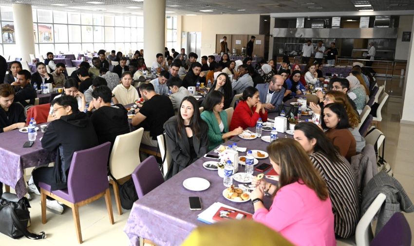 Yemekhanede gerçekleşen kahvaltılı buluşmada Rektör Savaş, öğrencilerle tanışıp sohbet etti. 49 farklı ülkeden öğrencinin katıldığı toplantıda Savaş, “Sizler bizim hem öğrencilerimiz hem de gönül elçilerimizsiniz. Türkiye’ye gelmeniz, Türkçe öğrenmek için verdiğiniz emekler taktire şayan. Hepinizi tebrik ediyorum. Sizleri tanımak, kültürünüzü öğrenmek bizler için sevinç verici. Uşak Üniversitesi olarak tüm birimlerimizle sizlerin yanındayız. Bir sıkıntınız, derdiniz olduğu zaman ilk bize gelin. Başka yerlerde çözüm aramayın. Sizler için elimizden geleni yaparız. Üniversitemiz laboratuvarlarından sınıflarına, spor salonlarından sosyal tesislerine bir öğrencinin isteyeceği tüm özelliklere sahip. Derslerinizde başarılı olup bölümleriniz zamanında başarıyla bitirmenizi ve ülkenizde güzel işlere imza atmanızı temenni ediyoruz” dedi.