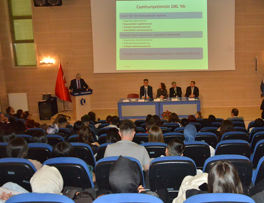 Uşak Üniversitesinin, Cumhuriyetin 100. Yılı etkinlikleri kapsamında yaptığı çalışmalardan ve Üniversitedeki gelişmelerden bahseden Rektör Yardımcısı Prof. Dr. Lütfi Özav, düzenlenen panelin gençlere çok faydalı olacağı düşündüğünü ifade etti.