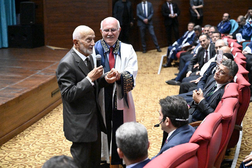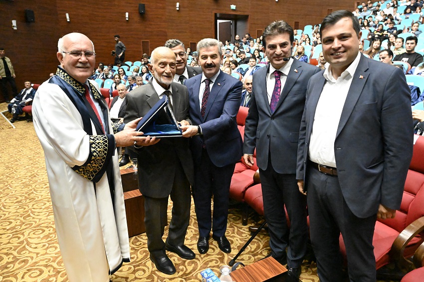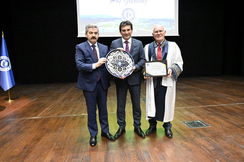 Program sonunda Uşak Valisi Dr. Turan Ergün ve Rektör Prof. Dr. Ekrem Savaş, Prof. Dr. Murat Yalçıntaş’a günün anısına teşekkür plaketi takdim ettiler.
