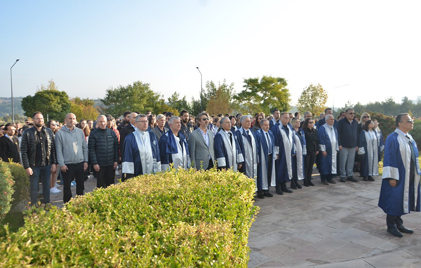“Savaşlarda yorgun ve fakir düşmüş bir milleti yeniden tarih ve medeniyet sahnesinde var eden, Cumhuriyetimizin kurucusu, İstiklal Savaşının başkomutanı Gazi Mustafa Kemal Atatürk’ü ebediyete irtihalinin 85. yılında saygı, minnet ve hasretle anıyorum.” diyerek konuşmasına başlayan Rektör Yardımcısı Prof. Dr. Kenan Taş, Atatürk’ün çok yönlülüğüne örnekler vererek dünya tarihinde unutulmayacak bir lider olduğunun altını çizdi.