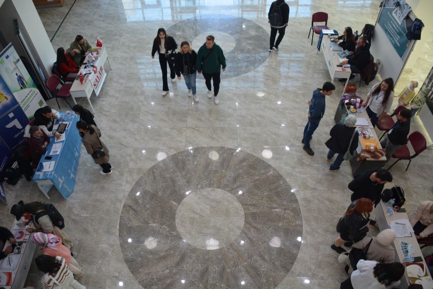 Recep Tayyip Erdoğan Kongre ve Kültür Merkezi fuaye alanında tüm gün devam eden insan kaynakları fuarı için farklı sektörlerden çok sayıda firma stant kurdu. Gün boyu stantları ziyaret eden öğrenciler şirket temsilcileri ile görüştü, firmalar hakkında bilgi aldı, staj ve iş başvurusunda bulundu. Kariyer Günü’23 etkinliğine katılarak stantları gezen Uşak Valisi Dr. Turan Ergün ve Rektör Yardımcısı Prof. Dr. Kenan Taş, firma temsilcileriyle görüşüp onlardan yaptıkları işler ve istihdamlarıyla ilgili bilgi aldı. Öğrencilerle de sohbet eden Vali Dr. Ergün ve Rektör Yardımcısı Prof. Dr. Taş, etkinlikten duydukları memnuniyeti dile getirerek emeği geçen herkese teşekkür etti.