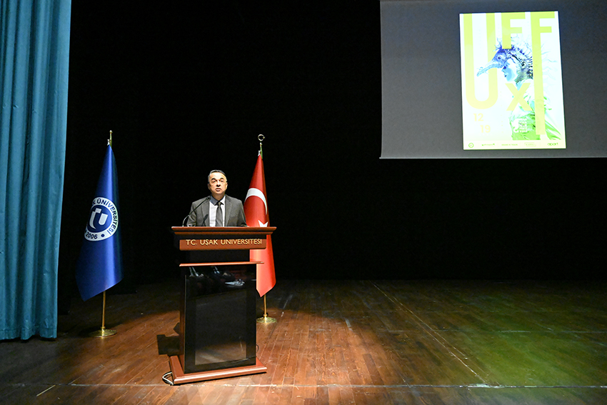 Festivalin açılışında yaptığı konuşmada Rektör Yardımcısı Prof. Dr. Kenan Taş, “Uşak Üniversitesi olarak uluslararası tüm alanlarda bilim üretip eğitim veriyoruz. Uluslararası sıralamalarda her yıl daha üst sıralarda yer alıyoruz. Üniversite olarak tek görevimiz bilim üretmek değil. Üniversite olarak kültüre, sanata ve şehrin gelişimine katkıda bulunmak da görevlerimizden. Uşak Üniversitesi olarak gerçekleştirdiğimiz uluslararası kültür ve sanat faaliyetleriyle üniversitemizin ve şehrimizin marka değerine büyük katkılar sağlıyoruz. Uluslararası Uşak Kısa Film Festivali, Uşak’ın marka değeridir. Yaptığınız iş hem üniversitemiz hem şehrimiz hem de sinema sektörü için çok değerli. Bu yüzden emeği geçenleri tebrik ediyorum.” dedi.
