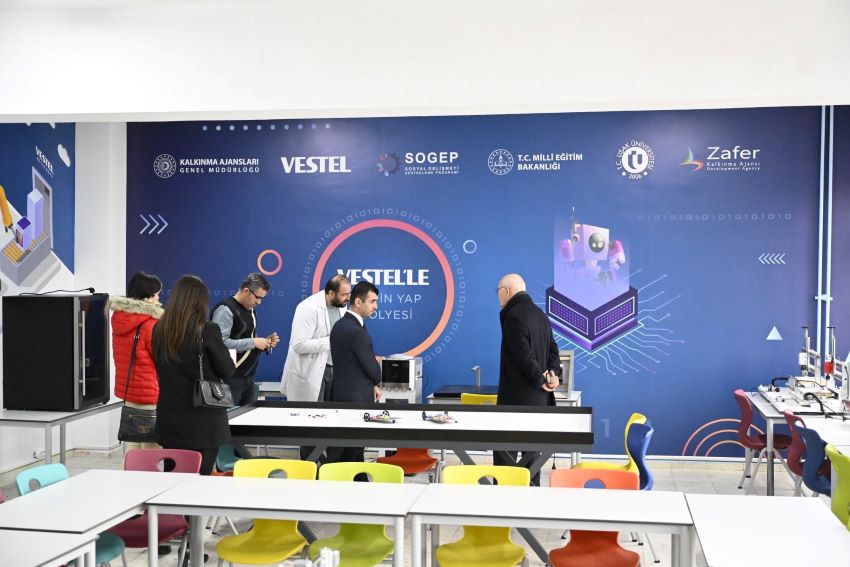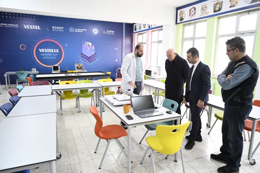 Uşak Üniversitesi Rektörü Prof. Dr. Ekrem Savaş, Uşak Üniversitesi ile Vestel işbirliğinde ve Zafer Kalkınma Ajansı desteğiyle yürütülen ‘Vestel’le Kendin Yap Atölyeleri’ projesi kapsamında Karaağaç Ortaokuluna kurulan “Kendin Yap Atölyesini” ziyaret etti.