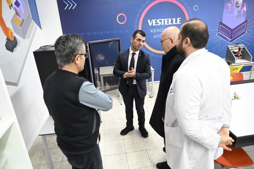 Rektör Savaş ve Vestel ekibi atölyeyi inceleyip yapılan çalışmalarla ilgili bilgi aldı.