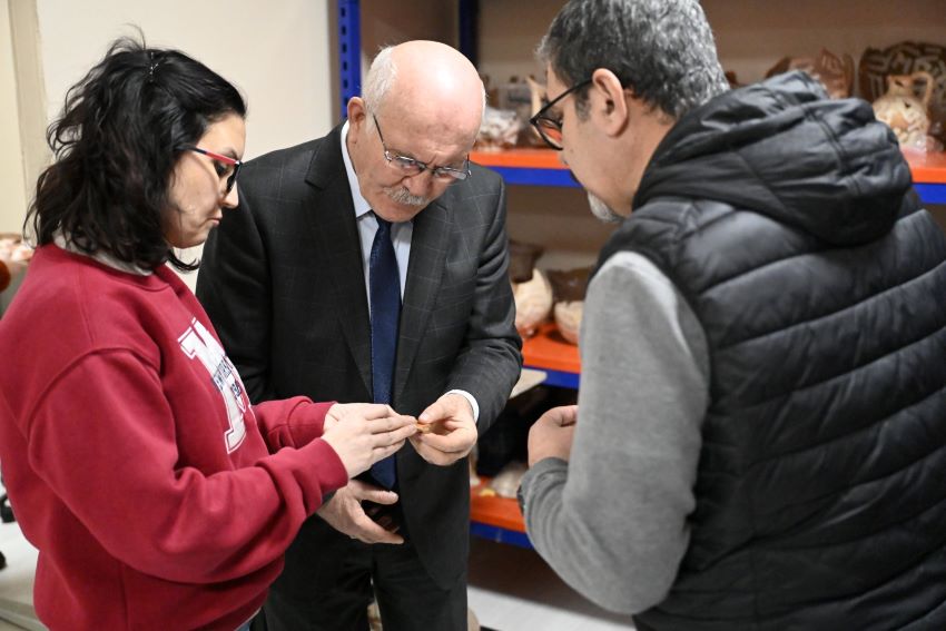 Uşak Üniversitesi Rektörü Prof. Dr. Ekrem Savaş, yapılan kazı çalışmalarında ele geçen eserlerin onarım ve belgeleme çalışmalarının daha hızlı yapılabilmesi ve bilimsel çalışmaların daha verimli yürütülebilmesi için üniversite bünyesinde kurulan “Arkeoloji ve Restorasyon Atölyesi”ni ziyaret etti.