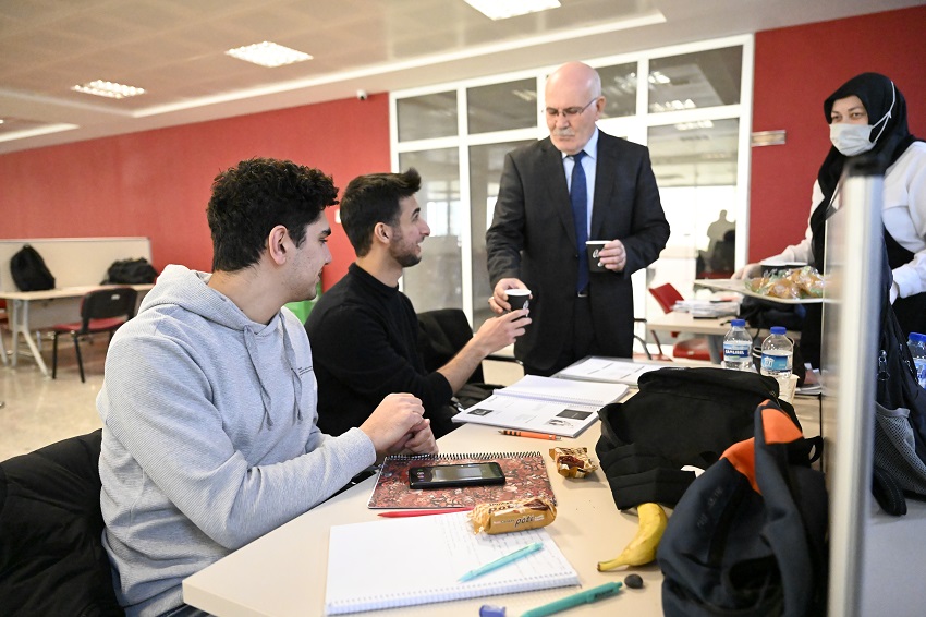Uşak Üniversitesi Rektörü Prof. Dr. Ekrem Savaş, Prof. Dr. Fuat Sezgin kütüphanesinde ders çalışan öğrencilerle sohbet edip çorba ikram etti.