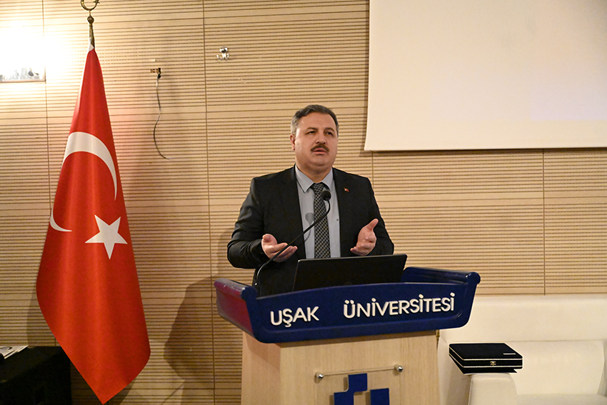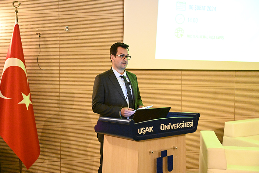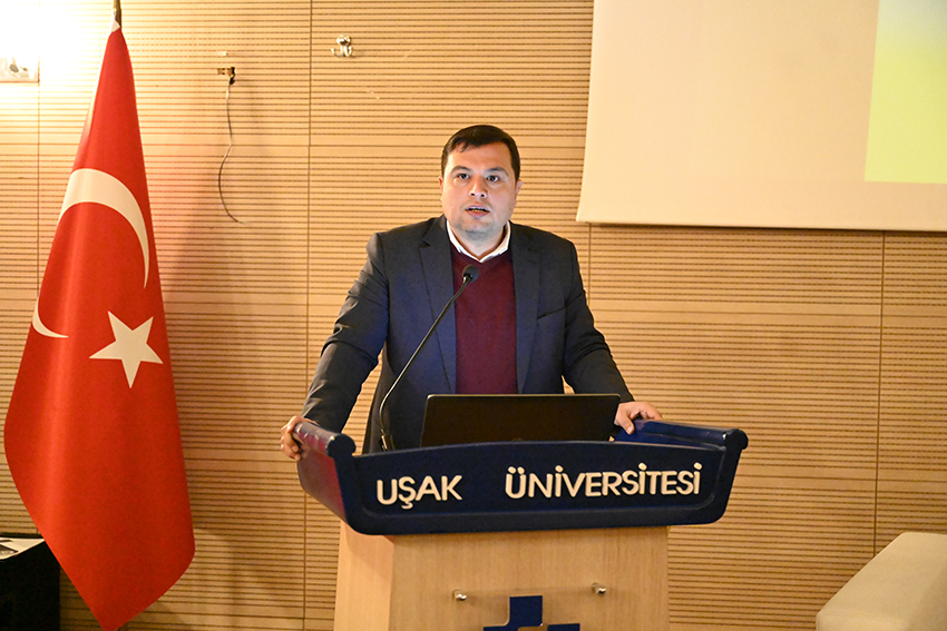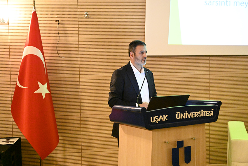 Açılış konuşmalarının ardından Uşak Üniversitesi İnsan ve Toplum Bilimleri Fakültesi Coğrafya Bölümü ve UDAM YK Üyesi Doç. Dr. İsmail Ege “6 Şubat Kahramanmaraş Depremleri ve Bölgenin Depremselliği” başlıklı sunumunu gerçekleştirdi. Daha önce Hatay’da görevli olan ve bölgeyi yakından tanıyan Doç. Dr. Ege, sunumunda bölgenin depremselliğini ve bölgede yaşanan büyük depremleri anlattı. Doç. Dr. İsmail Ege, afet yönetimde üniversitelerin deprem araştırma merkezleri, AFAD, il özel idare, belediye ve valilik gibi kurumların birlikte hareket etmesinin risk azaltma ve afet tedbirleri açısından hayati önem arz ettiğini ifade etti.