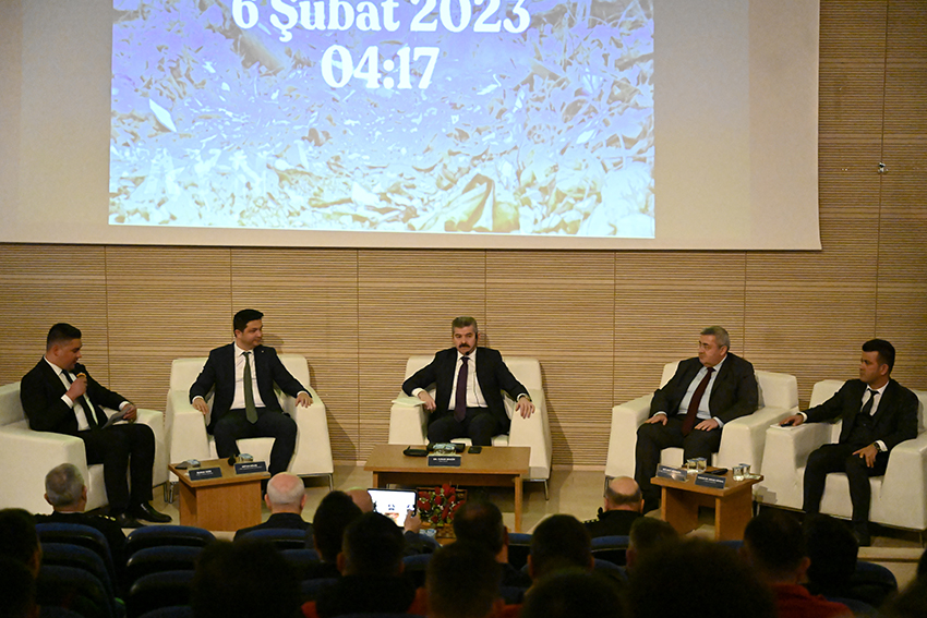 Uşak’ta yaptıkları çalışmalar hakkında bilgi veren Vali Dr. Ergün konuşmasında şunları aktardı: ‘‘6 Şubat 2023 saat 04.17’de gerçekleşen depremden haberdar olduğumuz ilk anda büyük bir ivedilikle GAMER merkezimizde toplandık. 24 saat esasına göre 1 ay bu çalışma devam etti. Battaniye üreticileriyle toplandık. OSB’den battaniye sevkiyatına başladık. Her gün gece GAMER’de toplanarak o günkü çalışmaları değerlendirdik. Belirli aralıklarla basını bilgilendirdik. Valilik koordinasyonunda, Belediye Başkanlığı ve diğer kurum kuruluşlar ile hayırseverlerimizin katıldığı büyük bir yardımlaşma kampanyası başlattık. Gıda ve giyecek yardımlarını, ilimizin değişik noktalarında ve spor salonlarında organize ettik. Bu çalışmaların yanında sürekli bölgeye personel hareketleri oldu. Bunları koordine ettik. İlk etapta biz Uşak’ın bütün ekiplerini Samandağ ilçesine yönlendirdik. Bu, birbirlerini tanıyan insanlarla oradaki çalışmaları daha verimli kıldı. Daha sonra deprem bölgesinden tahliye edilen 7.368 vatandaşımız Uşak’a geldi. 5.526 depremzedemizin kendi imkanları ile barınmasını sağladık. 1.560 depremzedemizi KYK yurtlarımızda; 282 depremzedemizi ise kamu misafirhaneleri ile otellerde misafir ettik. Bölgeye birçok sivil toplum kuruluşlarımız da sıcak yemek hizmeti sunmaya gitti. İlk 3 haftamız böyle geçti.’’