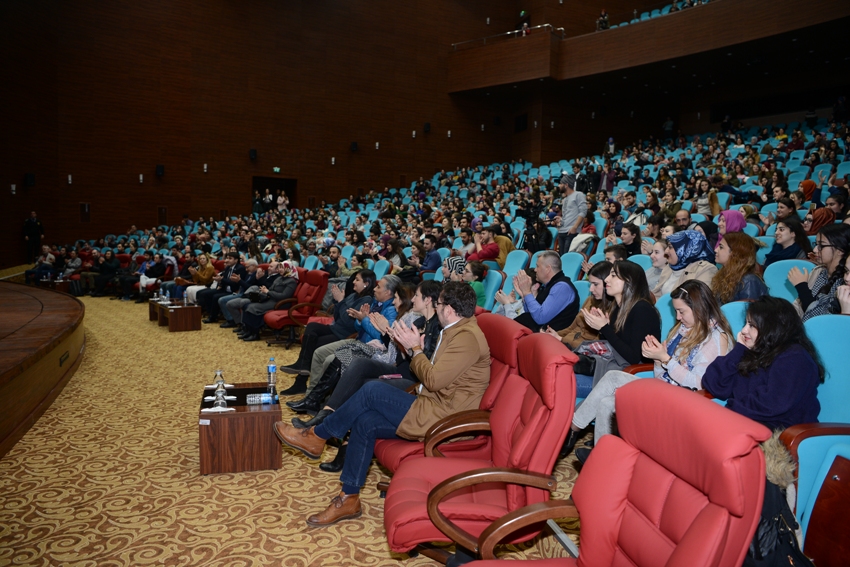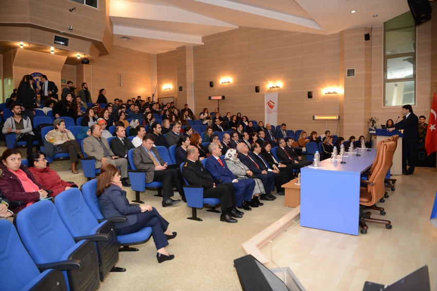 Panelin açılış konuşmasını yapan Rektör Yardımcısı Prof. Dr. Metin Gümüş, kadın ve erkeğin iki bütünün birer parçası olduğunu söyleyerek kadın ve erkeğin birbirinden ayrılmayan, birbirini tamamlayan iki önemli unsur olduğunu belirtti. Güçlü toplumların oluşmasında kadınların çok önemli bir yerinin olduğunu ifade eden Prof. Dr. Metin Gümüş “Bu açıdan bizim toplumumuzun da daha güçlü bir yere gelmesi açısından kadınlarımıza gerekli önemi vermemiz gereklidir. Kadınlar aileyi oluşturdukları gibi sağlıklı ve güçlü toplumun oluşturulmasında da çok önemli rol almaktadırlar. Tabi bu anlamda üniversitelerimize de çok önemli görevler düşmekte. Üniversitelerimiz siyasi, sosyal, kültürel, ekonomik, bilimsel, teknoloji ve sportif alanlar da çalışmalar yürüttüğü gibi kadınlar hususunda da önemli ve etkin çalışmalar yürütmesi gerekmektedir. Bu manada bugün düzenleyeceğimiz panelin bu açıdan yapacağımız ilk çalışmalar olduğunu düşünüyorum. Bunun ardından daha etkili daha efektif çalışmalar yapacağımızı da ümit ediyorum. Tabi ki ülkemizde kadınlara yönelik önemli kanuni düzenlemeler gerçekleşmekte ancak bunların etkilerine baktığımızda beklediğimiz etkinin oluşmadığını görmekteyiz, maalesef kadına yönelik şiddetin halen devam ettiğini görüyoruz. Dolayısıyla kadına yönelik çalışmaların sadece kanuni, hukuki çalışmalarla yetinmemesi lazım, yapacağımız çalışmaların insanımızın zihnine, gönlüne ve inancına da hitap etmesi gerekiyor. Bu açıdan üniversite mensupları ve akademisyenler olarak bizlere de önemli görevler düşüyor. Bizler bu manada çok iyi nesiller yetiştirmeliyiz. Başarı kriterleri sadece mesleki yetkilerle sınırlı olmayan kişisel maksimizasyonunu ön planda tutan ve para kazanmayı, kar elde etmeyi, önemli mevkilere gelmeyi hedefleyen reel bir gençlik yetiştirmek yerine bizler maddi ve manayı harmanlayabilen ve mesleki yetkinlikler ile beraber ahlaki yetkinliği de kendisinde barındıran erdemli mezunlar yetiştirmemiz gerekiyor. Bu sağlıklı bir toplum oluşturmamız açısından çok önemli. Kadınlarımızın kariyer planlamamızda, çocuğun yetiştirilmesinde önemli rolü olduğunun unutulmaması gerektiğini düşünüyorum. Bu nedenle kadınlarımızın sağlıklı bir toplum inşasında gerekli rolleri almaları çok önem arz ediyor. Tabi ki bu manada da 8 Mart Dünya Kadınlar Gününün yeryüzünde hakkın ve adaletin hakim kılınmasında, daha yaşanılabilir bir dünyanın, sağlıklı bir toplumun sağlanması açısından hayırlı olmasını diliyorum. Bütün kadınlarımızın 8 Mart Dünya Kadınlar Gününü kutluyorum.”dedi.