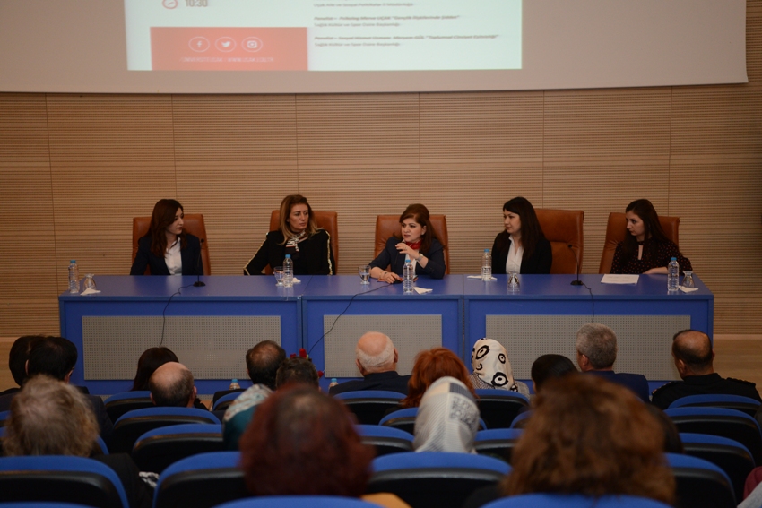 Panelde Prof. Dr. Nuray Şahinler “Akademide Kadın”, Uşak Üniversitesi Tıp Fakültesi Öğretim Üyesi Yrd. Doç. Dr. Ayşe Özdemir “Roman Kadınlarında Gebelik Süreci”, Uşak Aile ve Sosyal Politikalar İl Müdürlüğü Sosyal Hizmet Uzmanı Gamze Erçakır “Kadına Yönelik Şiddetle Mücadele, Sağlık Kültür ve Spor Daire Başkanlığı Psikolog Merve Uçak “Gençlik ilişkilerinde Şiddet” ve Sağlık Kültür ve Spor Daire Başkanlığı Sosyal Hizmet Uzmanı Meryem Gül “Toplumsal Cinsiyet Eşitsizliği” adlı sunumlarını gerçekleştirdiler.