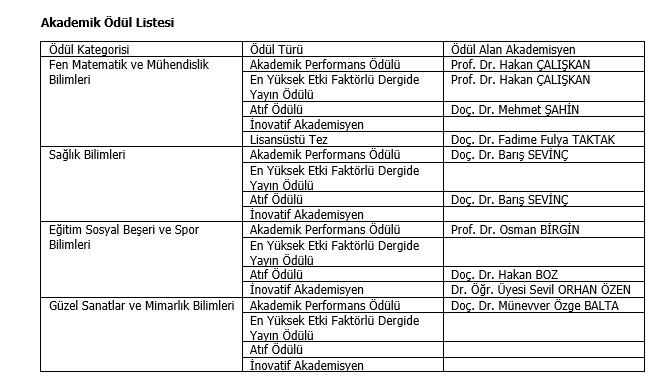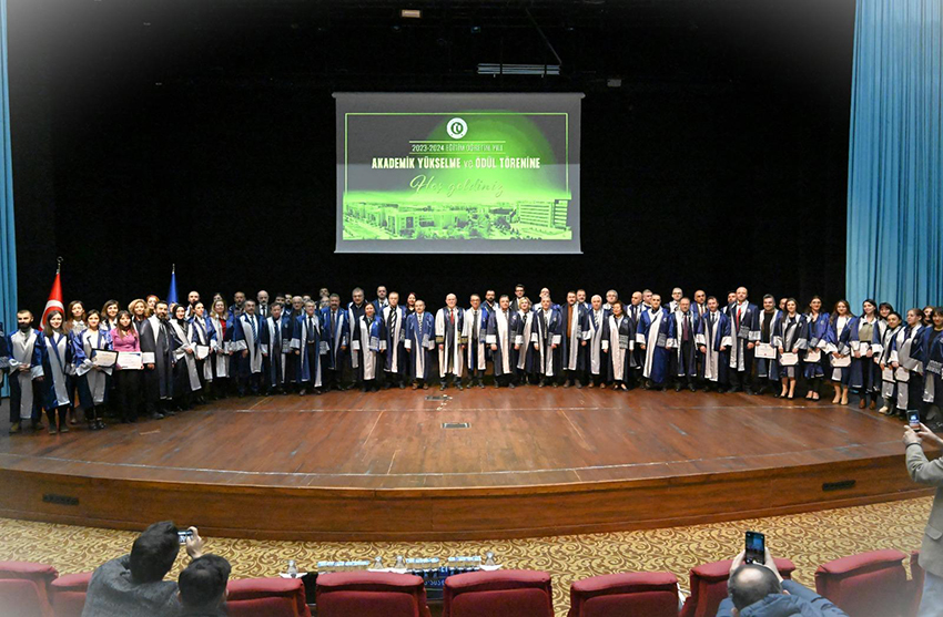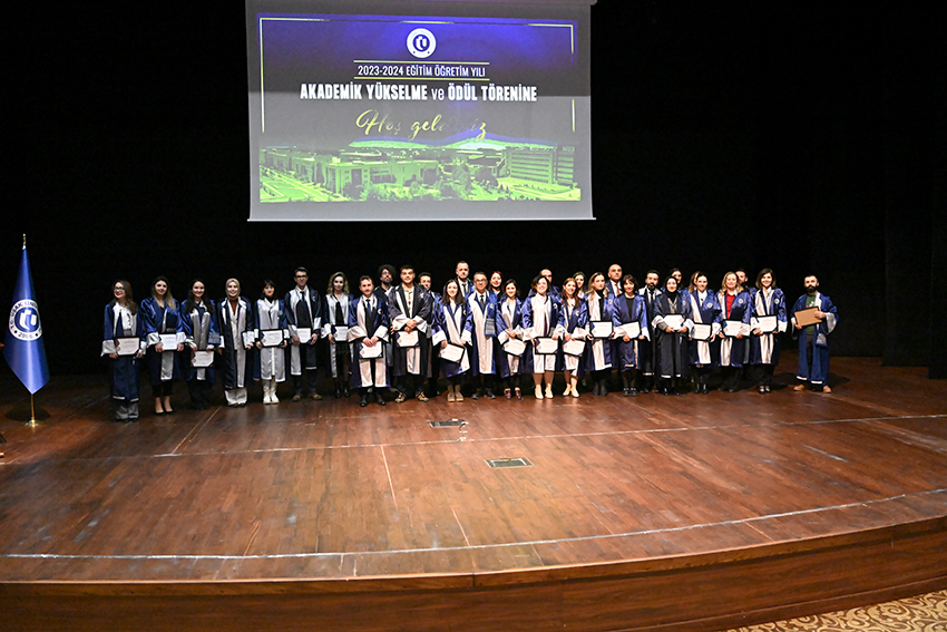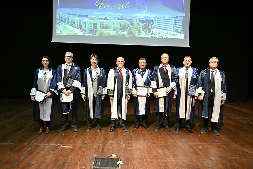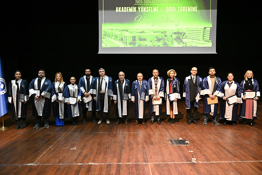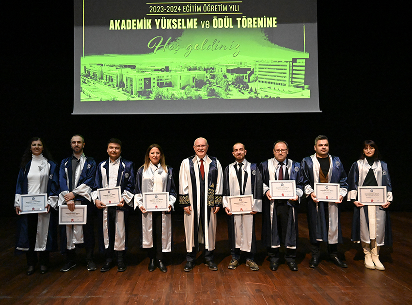 Rektör Prof. Dr. Ekrem Savaş’ın konuşmasının ardından yükselen 9 profesöre, 14 doçente ve 49 doktor öğretim üyesine cübbeleri giydirilerek, beratları verildi. Cübbe giydirme töreninin ardından 2023 yılı içerisinde, Fen, Matematik ve Mühendislik Bilimleri, Sağlık Bilimleri, Eğitim, Sosyal Beşeri ve Spor Bilimleri ile Güzel Sanatlar ve Mimarlık Bilimleri alanlarında yaptıkları bilimsel çalışmalar nedeniyle “Akademik Ödül”e hak kazanan Prof. Dr. Hakan Çalışkan, Prof. Dr. Osman Birgin, Doç. Dr. Mehmet Şahin, Doç. Dr. Fadime Fulya Taktak, Doç. Dr. Barış Sevinç, Doç. Dr. Hakan Boz, Doç. Dr. Münevver Özge Balta ve Dr. Öğretim Üyesi Sevil Orhan Özen’e ödül beratları takdim edildi. Törende ayrıca üniversitemiz birimlerinde görevli 7 idari personelimize (Şef Ali Ulutürk, Bilgisayar İşletmenleri Funda Doğmuş, Neziha Kızıldağ, Merve Ünal, Metin Yılmaz, Bora Sinan Uçar ve Memur Ayşegül Özkan) başarı belgesi verildi.