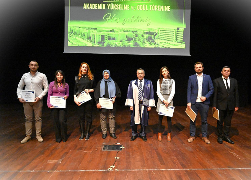 Törenin açılışında konuşan Rektör Prof. Dr. Ekrem Savaş, “Geçtiğimiz akademik yılda göstermiş olduğunuz üstün başarılarınızdan dolayı sizleri tebrik ediyorum. Her biriniz, bu üniversitenin değerli birer parçası olarak, akademik başarılarınızla, çalışma azminizle ve özverinizle üniversitemize çok önemli katkılarda bulundunuz. Ürettiği bilgiyi değere dönüştürerek, başka bir deyişle katma değer yaratarak bilimin ilerlemesine katkı sağlayan, donanımlı bireyler yetiştirmek için canla başla çalışan siz kıymetli akademisyenlerimizin ve iyi bir çalışma ortamının yaratılmasında kritik bir önem sahip olan idari işleri hatasız bir şekilde yürüten idari personelimizin başarıları bugüne kadar bizleri hep gururlandırdı. Bundan sonra da önemli başarılar elde edeceğinize inanıyor, çalışmalarınızda sizleri her zaman desteklediğimi, her zaman yanınızda olduğumu bilmenizi istiyorum” dedi.