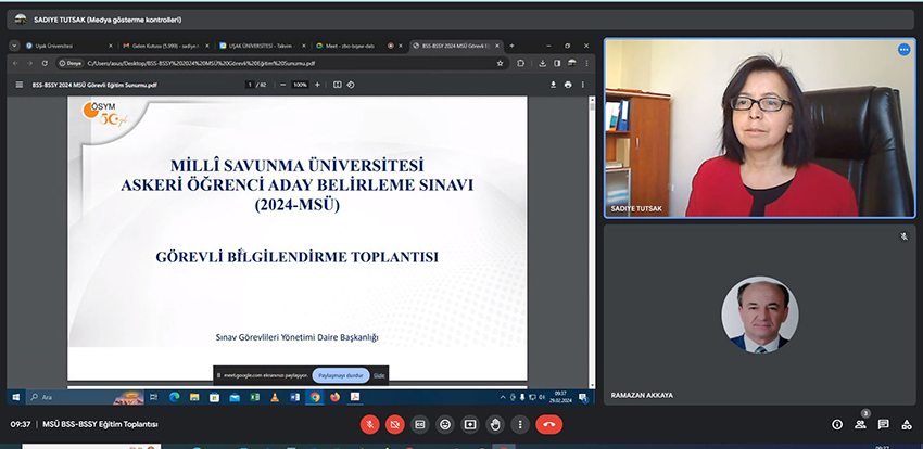 Ölçme, Seçme ve Yerleştirme Merkezi (ÖSYM) tarafından 3 Mart 2024 Pazar günü yapılacak “2024 Milli Savunma Üniversitesi (MSÜ) Askeri Öğrenci Aday Belirleme” sınavı öncesi 29 Şubat 2024 tarihinde Uşak Üniversitesi ÖSYM İl Sınav Merkezi Koordinatörlüğü tarafından sınav güvenliği toplantısı gerçekleştirildi.