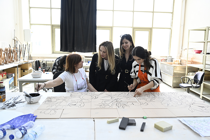 Tunus Monastır Üniversitesinden Doç. Dr. Jihen Trabelsi Kraiem çalıştayın açılış sunumunda hem ülkesindeki tasarım çalışmalarını hem de kendisinin yaptığı akademik ve sanatsal tasarımları anlattı. Ayrıca ilk gününde Menderes Tekstil Tasarım Direktörü Gökhan Çalış “Tasarımdan Markaya Bir Ürünün Hikayesi” başlıklı bir sunum gerçekleştirdi. Sunum sonrası dinleyicilerin etkileşimli katılımı ile tasarımların ülke ve pazarlara göre ticarileşme süreçleri söyleşi düzeninde tartışıldı. Füsun Çövenoğlu ise “Renkli Sır Tekniği ile Seramik Pano Uygulaması” başlıklı çalışmayla seramik atölyesinde çalıştay katılımcıları ile bir araya geldi.