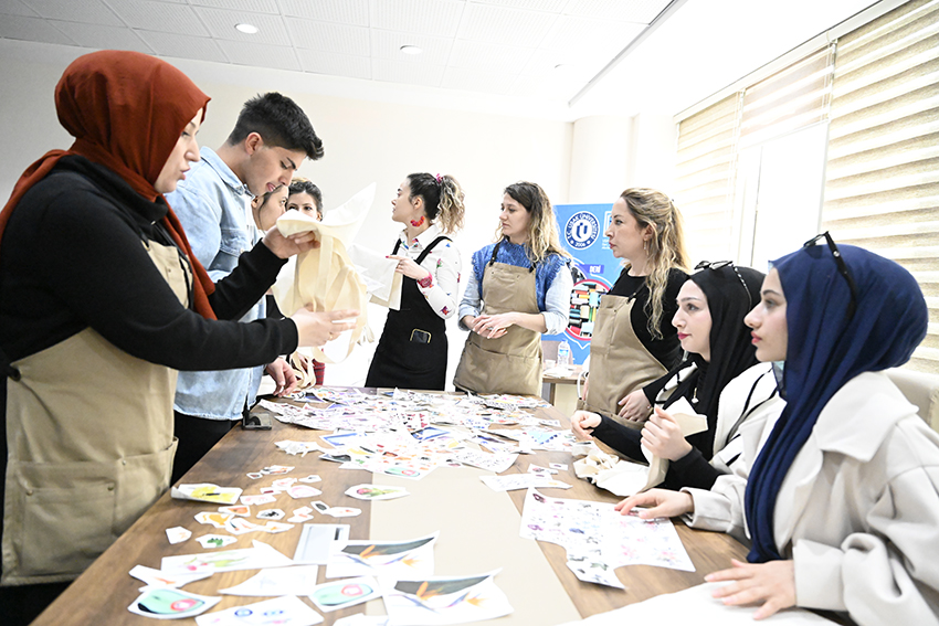 Çalıştayın üçüncü gününde Füsun Çövenoğlu “Renkli Sır Tekniği ile Seramik Pano Uygulaması” başlıklı atölyeyi gerçekleştirirken Doç. Dr. Jihen Trabelsi Kraiem “Keçe Tasarım Uygulamaları” başlıklı uygulamalı bir etkinlik yaptı. DTS Tasarım Merkezi Ekibi ise “Transfer Baskı Workshop”u yaptı.