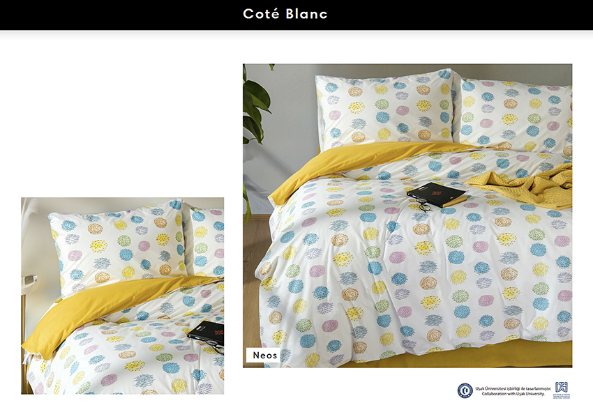 Uşak Üniversitesi Deri Tekstil ve Seramik (DTS) Tasarım Uygulama ve Araştırma Merkezi tarafından; 20 yılı aşkın süredir Avrupa'daki birçok büyük marka için ev tekstili ürünleri üreten ve yoluna Coté Blanc markasıyla yoluna devam eden ev tekstili firması Yön Pamuklu Dokuma için katma değerli ürünler tasarlandı. Firma tarafından seçilen tasarımlar yapılan kritiklere göre DTS Tasarım Merkezi tarafından düzenlenerek firmaya özel koleksiyonlar hazırlandı.
