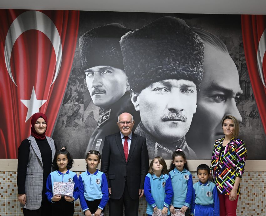Okuma yazma becerilerini kazanan ilkokul birinci sınıf öğrencilerinin, öğretmenleri eşliğinde "İlk Mektubum" projesi kapsamında yazdıkları mektuplar Rektör Prof. Dr. Ekrem Savaş’a ulaştı.