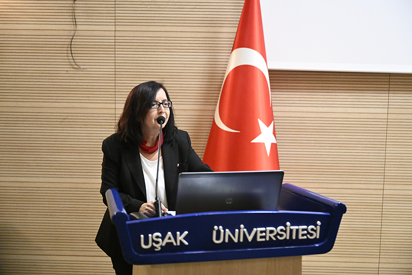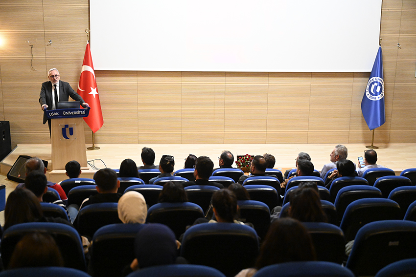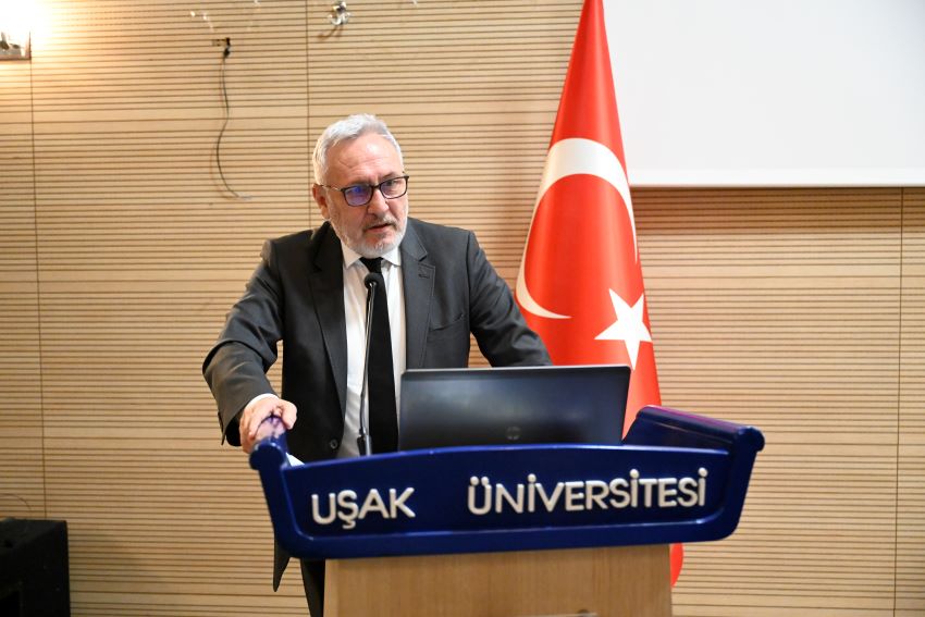 Mustafa Kemal Paşa Amfisinde yapılan ve Ankara Üniversitesi Türk İnkılap Tarihi Enstitüsü’nden Prof. Dr. Temuçin Faik Ertan’ın konuşmacı olarak yer aldığı konferansa Rektör Vekili Prof. Dr. Osman Birgin, Uşak Belediye Başkan Yardımcısı Mehmet Akif Şanlı, fakülte dekanları, yüksekokul müdürleri, akademisyenler, konuklar ve öğrenciler katıldı.