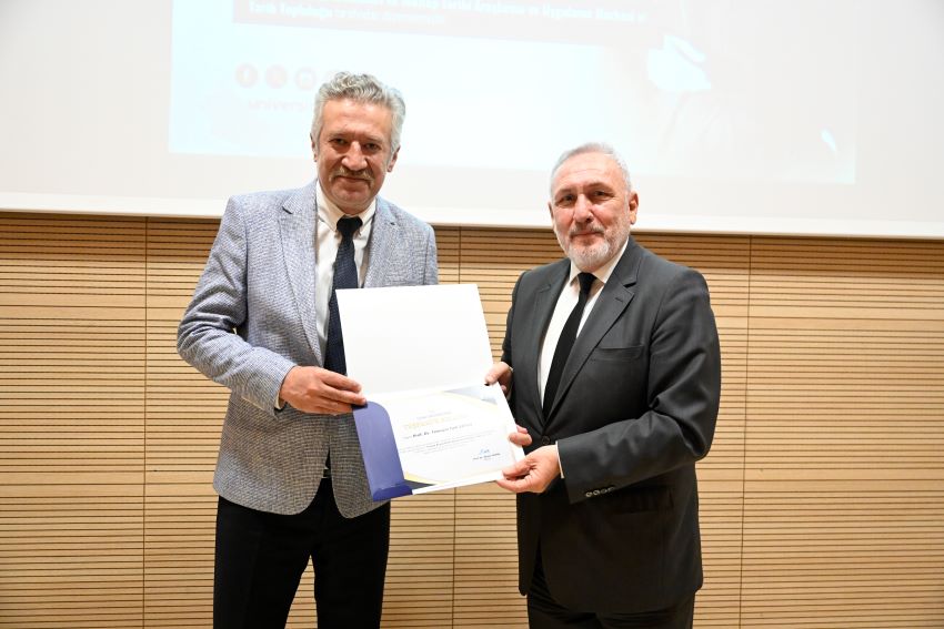 Programın sonunda Rektör Vekili Prof. Dr. Osman Birgin tarafından Prof. Dr. Temuçin Faik Ertan’a, üniversitemiz plaketi ve Uşak Belediyesi Başkan Yardımcısı Mehmet Akif Şanlı tarafından teşekkür belgesi verilip toplu fotoğraf çekildi.