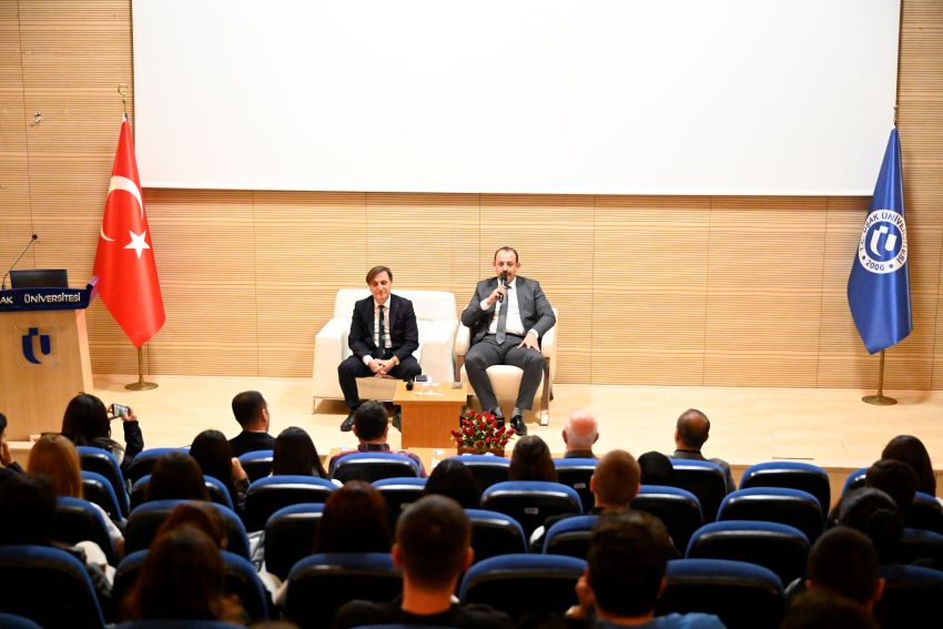 Cumhuriyet Başsavcısı Serdar Durmuş ve Adalet Komisyonu Başkanı Kayhan Yıldırım, Uşak Üniversitesi Mezunlar Ofisi ve Kariyer Geliştirme Koordinatörlüğü tarafından düzenlenen ‘Kariyer Sohbetleri’ adlı etkinlikte öğrencilerle bir araya geldi.