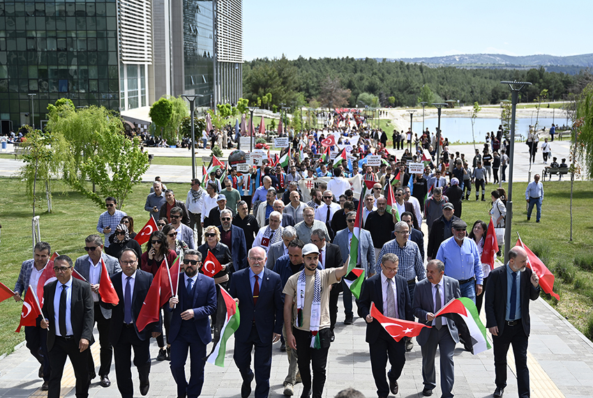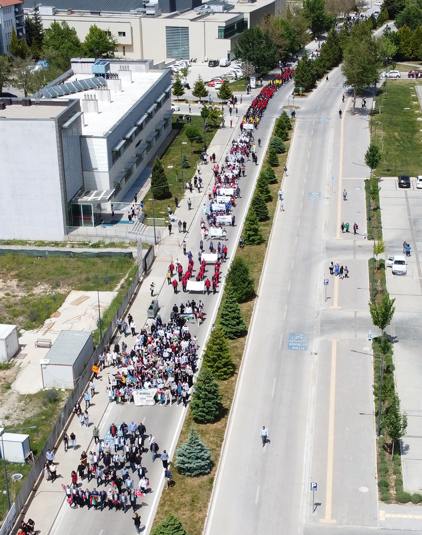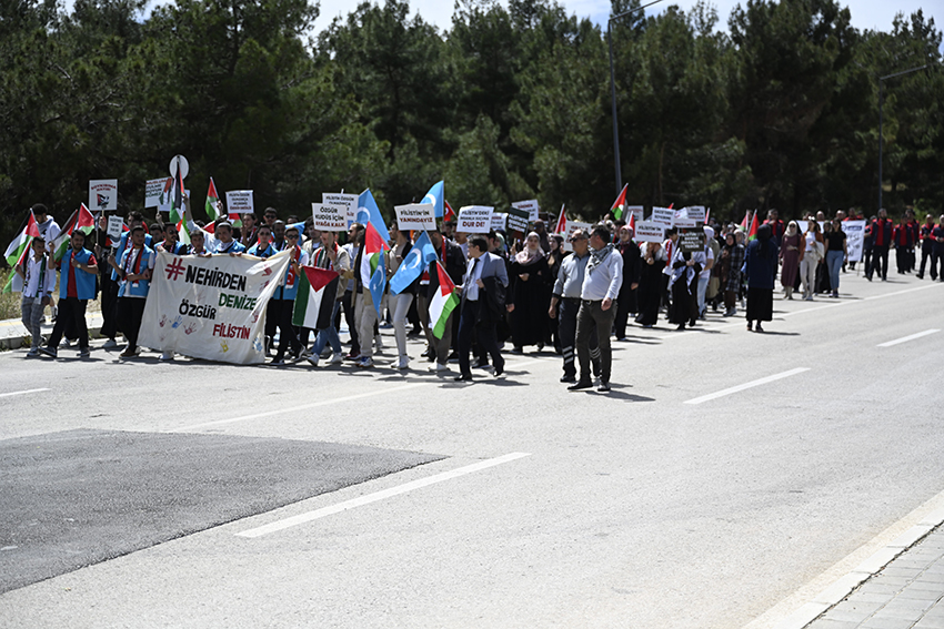 Filistin’e destek yürüyüşüne katılan öğrencilere ve personellere gösterdikleri duyarlılıktan dolayı teşekkür eden Rektör Savaş sözlerini şöyle sürdürdü: “8 aydır orantısız bir güç ile Filistin’deki bebekler, kadınlar, yaşlılar adeta bir nesil yok edilircesine öldürülüyor. Filistin her gün bombalanıyor. Uşak Üniversitesi olarak buna kayıtsız kalmadık ve kalmayacağız. Öğrencilerimiz ‘Filistin’e Destek Çadırları’nda İsrail’in Filistin halkına yönelik zulmüne dikkati çekiyor. Bugün de bahar etkinliklerimiz kapsamında Filistin’e destek veren bir yürüyüş yaptık. Katılım gösteren herkese çok teşekkür ediyorum. 3 gün sürecek etkinliğimiz dün engelli bireylere dikkati çekmek için bir dizi etkinlikle başladı. Bugün Filistin için yürüdük. Etkinliğimiz yarın ise Eski Orman ve Su İşleri Bakanımız Prof. Dr. Veysel Eroğlu’nun vereceği konferans ile devam edecek. Ayrıca program kapsamında kampüsümüzde birçok farklı etkinlik yapılacak.”