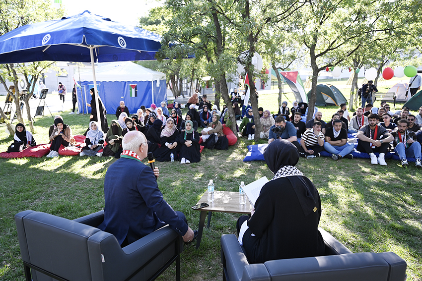 Prof. Dr. Savaş Üniversite Camii yanına kurulan “Filistin’e Destek Çadırları”nı da ziyaret etti. Öğrencilerle sohbet eden Rektör Savaş öğrencilerden gelen soruları da yanıtladı.