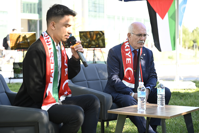 Konuşmasında Filistin için kampüse kurulan “Filistin’e Destek Çadırları”na da dikkati çeken Prof. Dr. Ekrem Savaş; “Dünyanın sessiz kaldığı bu zulme Uşak Üniversitesi olarak sessiz kalmayacağımızı bir kez daha gösterdik. Bu toplantıların hayırlara vesile olmasını ve Filistin’in kurtuluşuna vesile olmasını dilerken özgür bir Filistin’in doğmasını temenni ediyorum.” dedi.