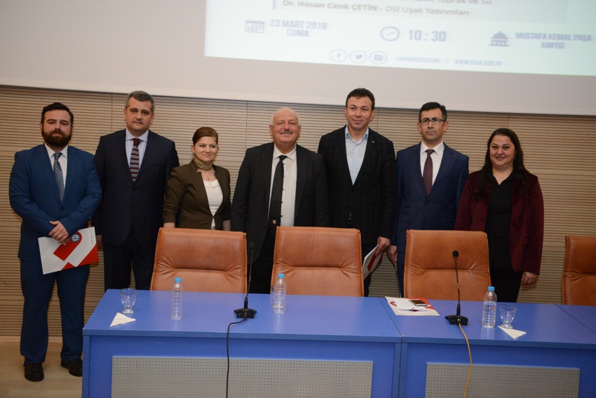 Panelde TEMA Vakfı Uşak İl temsilcisi Doç. Dr. Barış Metin “Toprak ve Su: Suyun Mirası, Anadolu’da Su”, DSİ Şube Müdürü Dr. Hasan Cenk Çetin “DSİ Uşak Yatırımları”, Dr. Öğretim Üyesi Ayşen Melda Çolak “Su ve Hayat”, Dr. Öğretim Üyesi Uğur Yıldırım “Küresel ısınma ve Su” ve Dr. Öğretim Üyesi Nurdoğan Topal “Su ve Toprakta Nitrat Birikimi” konulu sunumlarını gerçekleştirdiler.