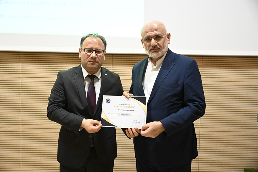 Daha sonra kürsüye gelen Diyanet İşleri Başkanlığı Mushafları İnceleme ve Kıraat Kurulu Başkanı Dr. Hafız Osman Şahin, konuşmasına kendi kariyerini anlatarak başladı. Dr. Şahin, sonrasında başkanı olduğu kurulun görev ve faaliyetlerinden bahsetti. Devamında ise Kur’an-ı Kerim’in nüzul sürecinden günümüze Müslümanlar için önemine değinen Dr. Osman Şahin, Kur’an’ın okunması, ezberlenmesi, ahkâmının uygulanması ve ahlakıyla ahlaklanmanın değerini anlattı. Ayrıca özellikle İslami ilimler öğrencilerinin Kur’an hizmetlerinde görev alabilmeleri için yapmaları gerekenlerden bahseden Dr. Şahin, konferans bitiminde konu hakkındaki soruları cevapladı.