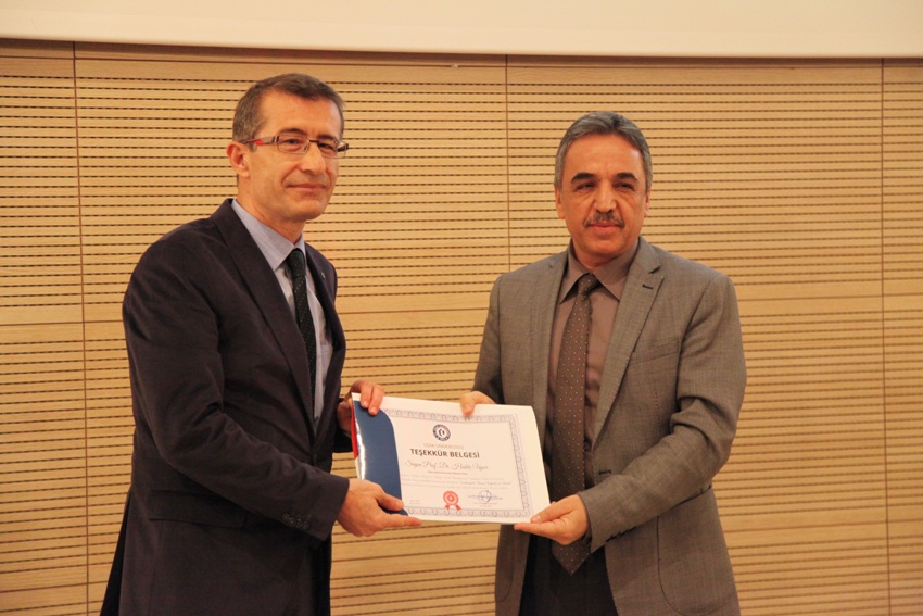 Konferansın sonunda Prof. Dr. Hakkı Uyar’a konuşmasından dolayı teşekkür eden Rektör Yardımcısı Prof. Dr. Saim Savaş üniversitemiz adına plaket ve Rektör Yardımcısı Prof. Dr. Ali Yılmaz ise teşekkür belgesi verdi.