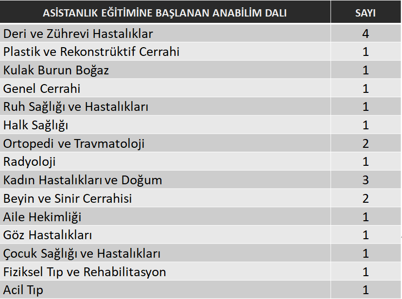 TUS'ta başarılı olarak asistan eğitimine hak kazanan Uşak Üniversitesi mezunlarının Anabilim Dallarına göre dağılım şu şekilde gerçekleşti;