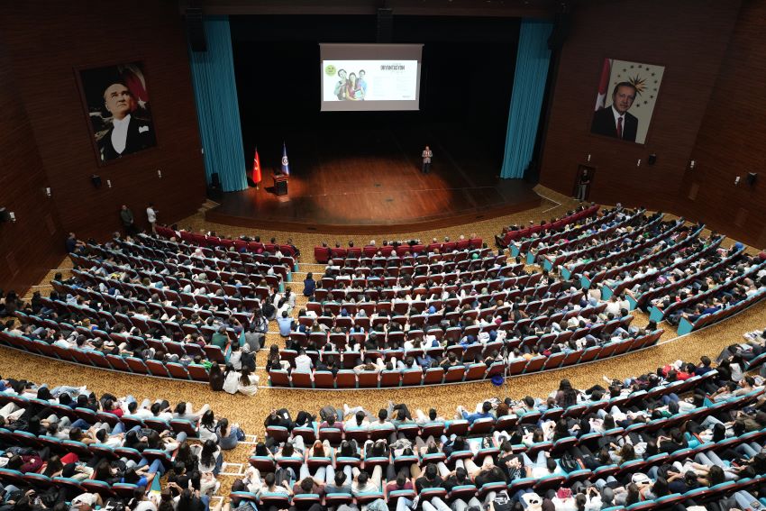 Oryantasyon programı Sağlık, Kültür ve Spor Daire Başkanlığı Psikolojik Danışma ve Rehberlik Birimi tarafından gerçekleştirilen bağımlılıkla mücadele konulu etkinlikle sona erdi. Etkinlikte Psikolog Merve Uçak ‘Bağımlılıkla Mücadele’ ve Psikolog Sevgican Dağlı ‘Alkol ve Madde Bağımlılığı İle Mücadele’ başlıklı birer sunum yaparak öğrencilerden gelen soruları cevapladılar.