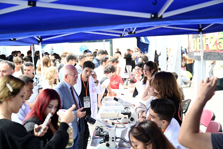 Konuşmasının ardından, tüm gün boyunca süren ve rektörlük önünde kurulan öğrenci toplulukları stantlarını ziyaret eden Rektör Savaş, çalışmalar hakkında bilgi aldı. Rektör Savaş’ı aralarında görmekten mutlu olan öğrenciler Prof. Dr. Ekrem Savaş’la tanışıp bol bol hatıra fotoğrafı da çektirdiler.
