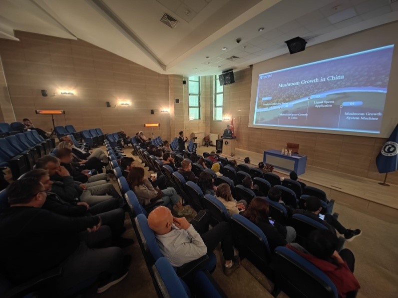 Dr. Mike Sun ‘Çin’de Mantar Üretimi ve Mantar Teknolojisindeki İnnavosyanlar’ ve Dr. Mustafa Kemal Soylu ‘Türkiye Mantar Üretimi ve Mantarda Şişe Kültürü Teknolojisi’ konulu sunumlarını gerçekleştirdi.