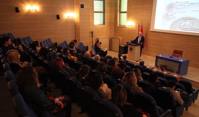 Mustafa Kemal Paşa Amfisinde gerçekleşen konferansa Ziraat ve Doğa Bilimleri Fakültesi Dekanı Prof. Dr. Nuray Şahinler, Tıp Fakültesi Dekan Yardımcısı Prof. Dr. Suat Şahinler, akademik ve idari personel ile öğrenciler katıldı.